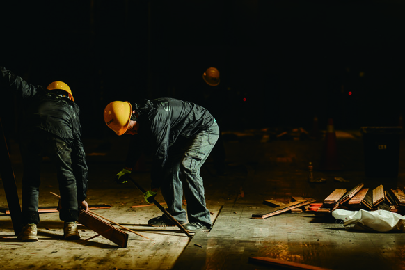 歌劇院舞台地板拆裝工程,以集成材料延長使用生命週期,持續落實環境永續理念,開創臺灣藝文場館先例。
