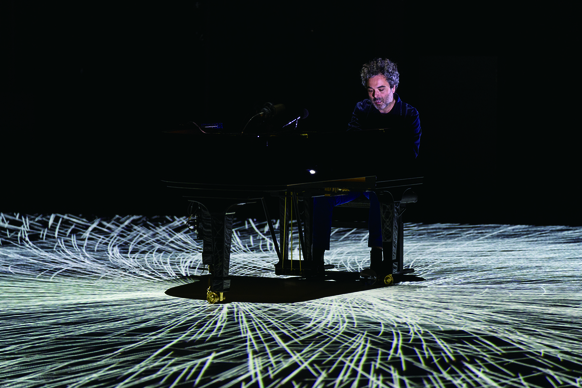 鋼琴與表演者完全融入在即時投影的光影空間中,宛如在抽象派與印象派畫作之間漫步。© Quentin LAFONT
