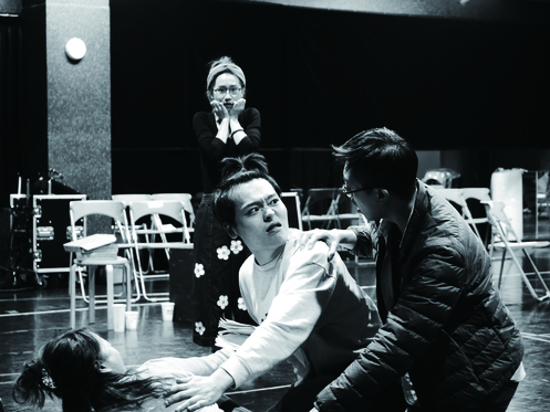 參與多齣戲劇場工作的彩排,佑仁深刻理解劇場人解決疑難雜症的本領。(《單身租隊友》排練現場,楊景翔演劇團提供)