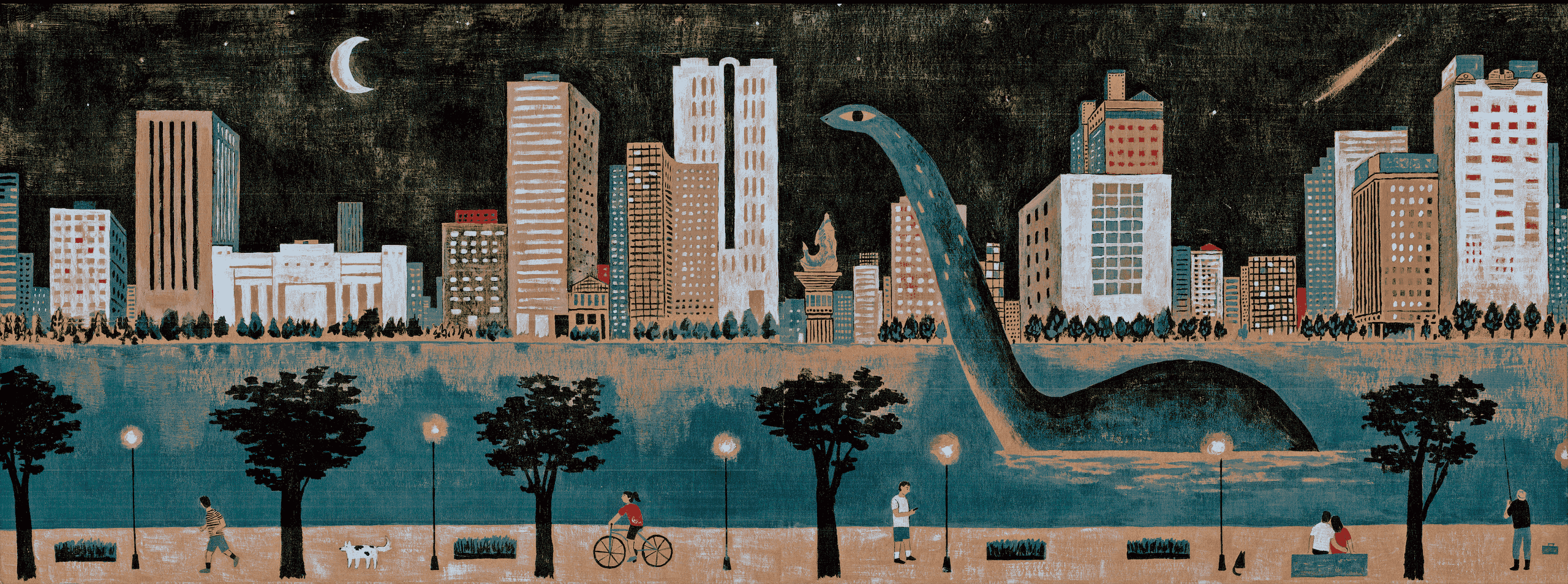 「我的第一隻恐龍應該是高雄駁二駐村時想出來的。駁二就在愛河旁邊,我就會騎腳踏車或者運動,但晚上愛河就是讓人覺得,像是水裡是不是藏著什麼生物?晚上跟白天完全不一樣。」常常在大白天,高雄的霧霾重得連正前方的大樓也看不見,污染對城市景觀的影響顯而易見。「就想到恐龍。應該有什麼生物藏在水中,但因為霧霾或者各種狀況沒有注意到。」