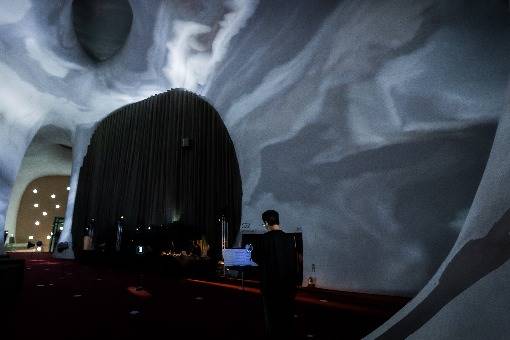 Dimension Plus╳T.A.P.Project reCONNECT 2024: NEW CANVAS uses the lofty, undulating space of the NTT as a 19-meter high canvas for AI computations, coupled with an enveloping audio experience to create a new world of visuals and sound.