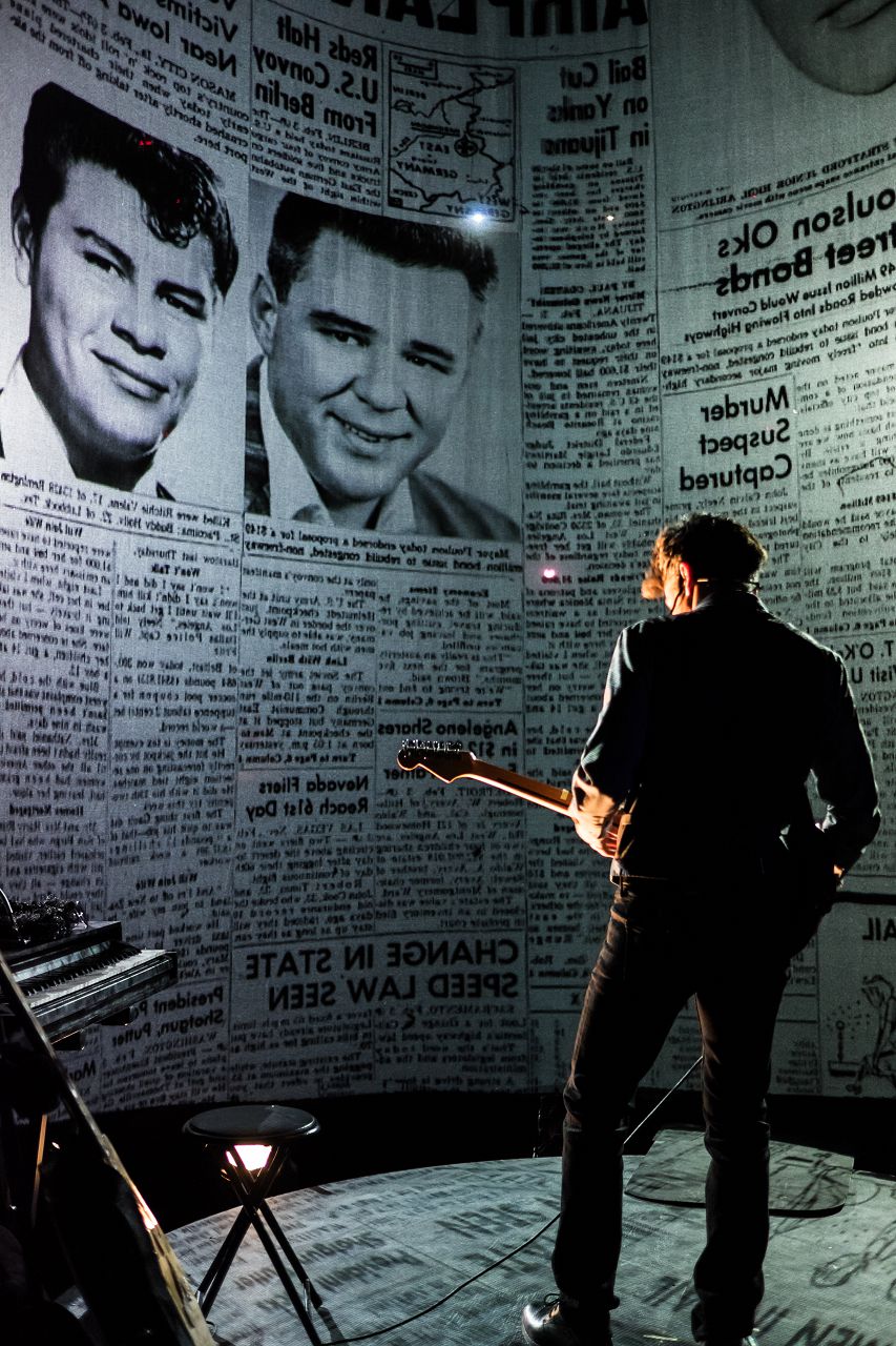 ミラーは、バッグス・バニー、チャーチル首相からボブ・ディランまで、100分で100の役を演じます。マルチメディア映像を用い、第二次大戦後、冷戦、米ソ宇宙開発競争、ベトナム戦争、アメリカの公民権運動、ロックの誕生へと時空を転換させます。低速度撮影法を用い、モノローグ、流行歌、流行音楽、そして映像によって、それぞれの時代を掘り下げ、政治や文化の時代による変化を映し出します。