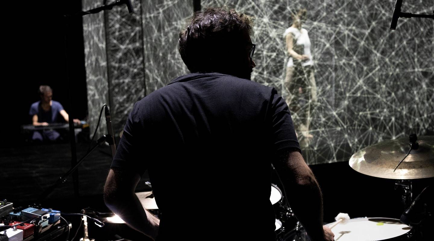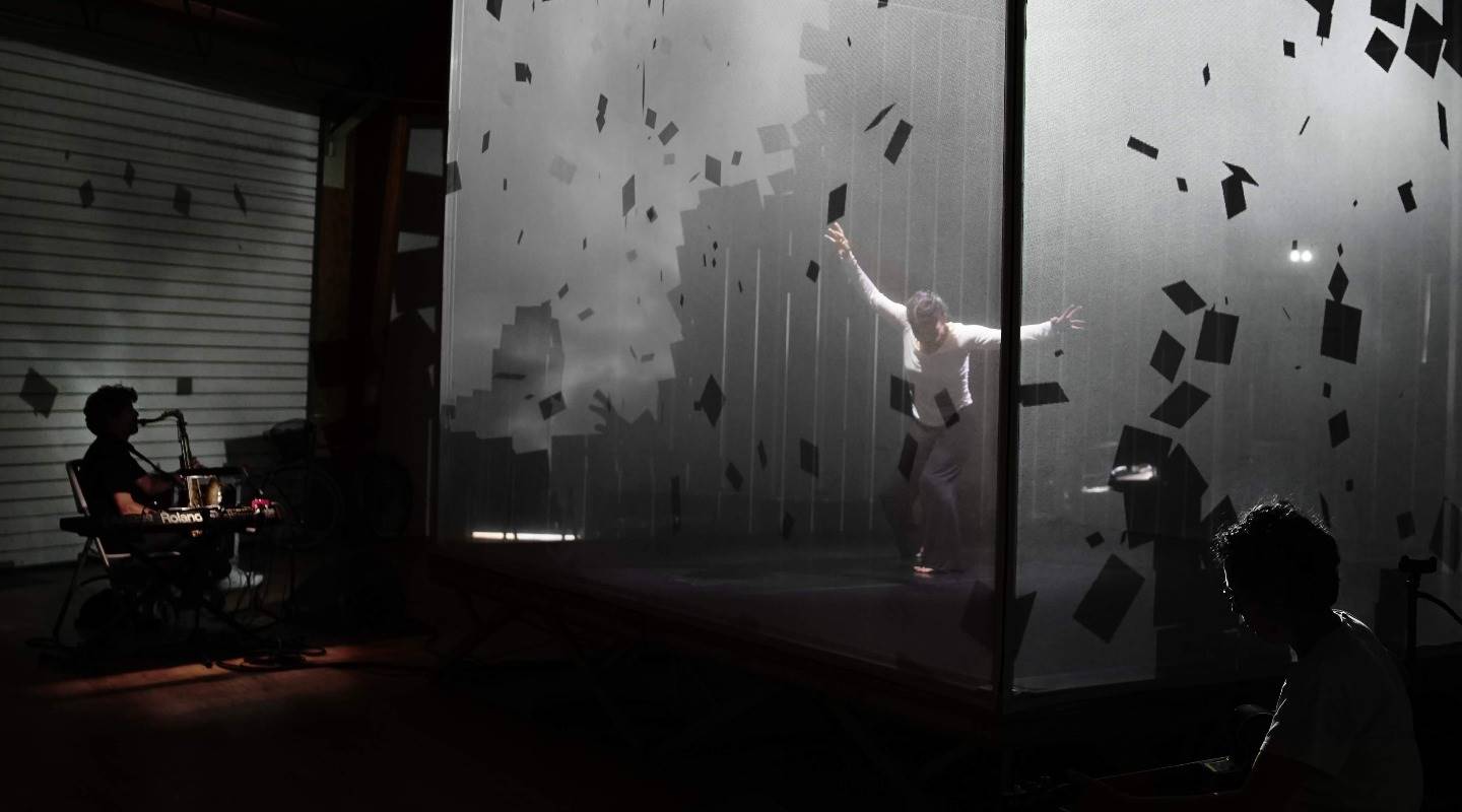 M&B雙人組2022年曾帶《大潮》劇場特映暨展覽來到歌劇院,超乎想像的虛實交錯展演,令人驚豔,這次《晝夜切分點》以萬物的分點作為靈感打造跨域作品,如前作《Hakanaï》,立方體舞台搭配他們自行研發的科技軟體eMotion,所有的影像皆為即時生成,隨著音樂節奏的改變,舞者的肢體與能量將轉化為雙眼可見的光影及線條變化,充滿詩意、但又極具衝擊感。現場樂團則以吉他、鍵盤、打擊樂器和薩克斯風,交織譜出獨特演奏風格,視覺、聽覺雙重體驗相輔相成。
