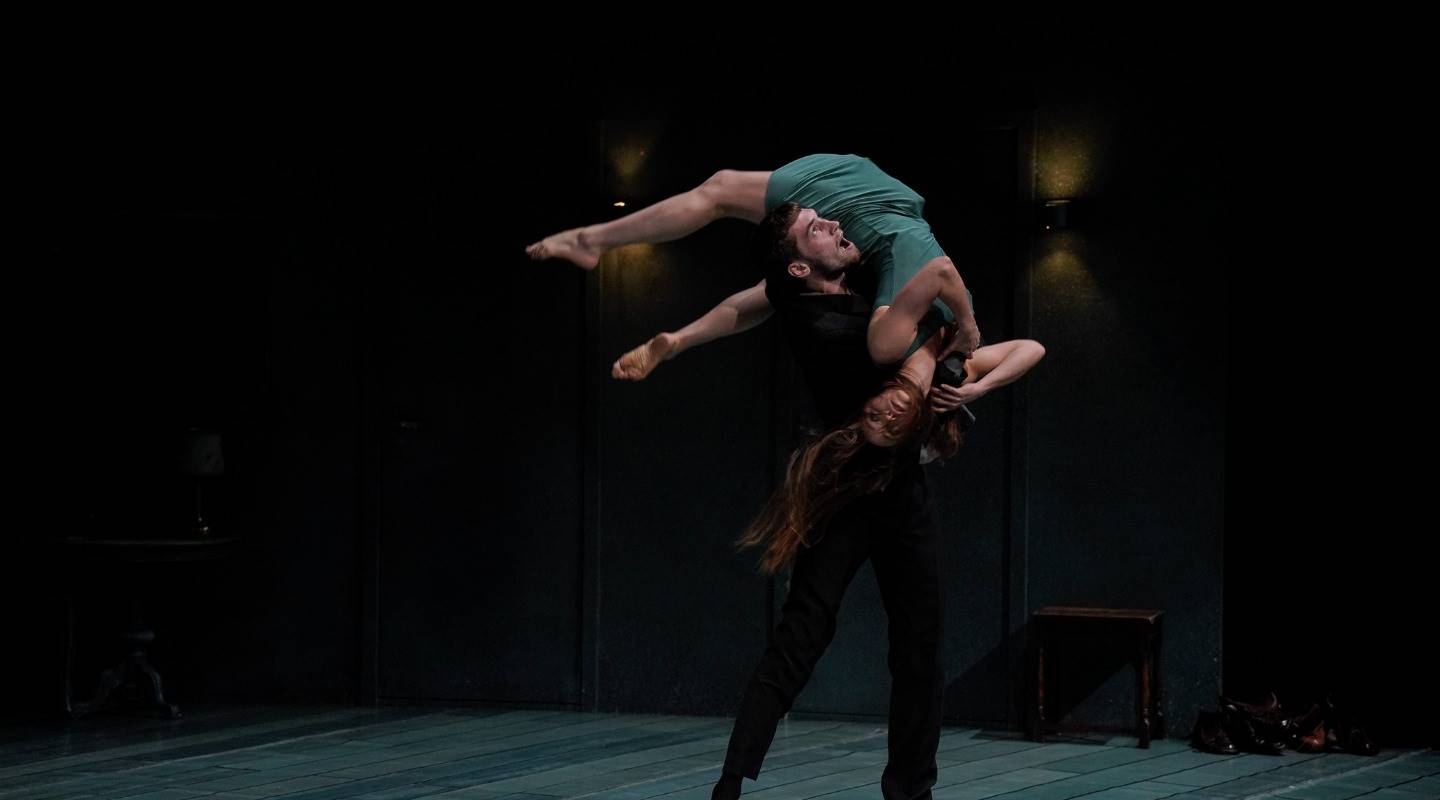 歐洲當紅的比利時偷窺者舞團驚悚大作《密室三舞作》(Triptych),創辦人嘉琵耶拉.卡莉佐和法蘭克.夏堤耶爾用堪比電影導演大衛.林區的詭異影像美學,打造了令人不安、恐懼,卻又充滿情慾、偏執、甜蜜與暴力,窺探人性的黑暗世界。《密室三舞作》改編自2013至2017年間,舞團與荷蘭舞蹈劇場(NDT1)共創的作品—《消失的門》(The Missing Door)那幾扇打不開的門是生命的困境還是出路;《謎樣的房間》 (The Lost Room)在詭異船艙中,自行膨脹的床單和赤裸的女傭,挑起記憶的痕跡與內心的情緒;《隱藏的地板》(The Hidden Floor) 在浸滿水的廢棄餐廳裡,濕漉漉的舞者被無形的強大力量控制,觀眾將與表演者在現實與幻想中一起抽絲剝繭。