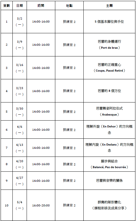 時間:3/2-4/27,每週一14:00-16:00