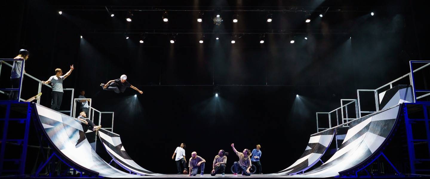 滑板選手和花式跑者在令人屏息的《失重玩家》表演中飛躍。充滿情感、熱情和流暢的燈光設計,一場令人興奮、目不轉睛的演出。— 荷蘭《Scenes》