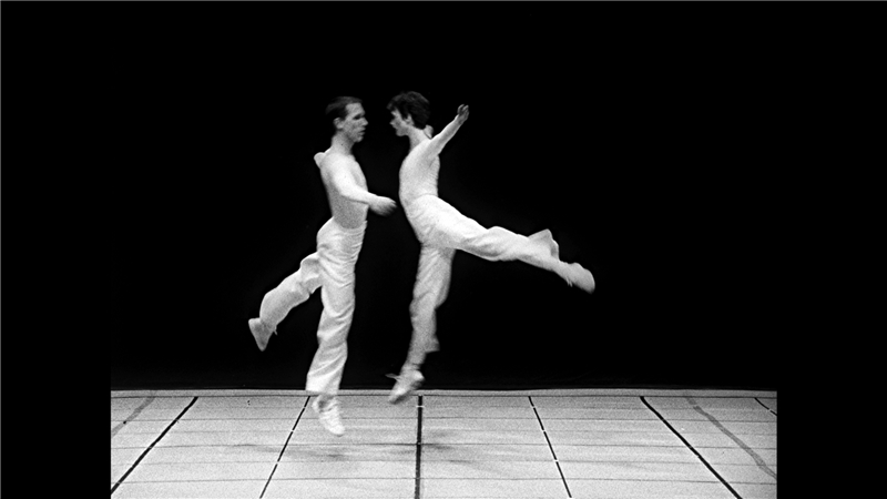 在《舞》中,舞者循著菲利普.格拉斯低限綿延的旋律,展開無限的循環與重複,行走、跨步、跳躍、旋轉,以此不斷反覆堆疊。細緻純粹的動作中有著偶爾錯落的差異,牽動了舞者之間的動能與張力,構築身體與空間的對話。舞台上新的觀看維度來自於索爾.勒維特唯一的影像創作,將《舞》的錄像投影至覆蓋於舞台前方的透明薄紗,巧妙運用影像的不同角度和舞者的動作同步,在雙重空間中,時而前後交疊,時而左右分離,為舞台空間雕塑出平行與垂直深度。三十年前所拍攝的35釐米黑白錄像,於2009年獲紐約巴德學院的費雪表演藝術中心 (The Fisher Center for the Performing Arts at Brad Collage) 委託重製為數位影像,重現了柴爾茲當年的絕美舞姿,與舞台上的新世代舞者展開跨世代合作。
