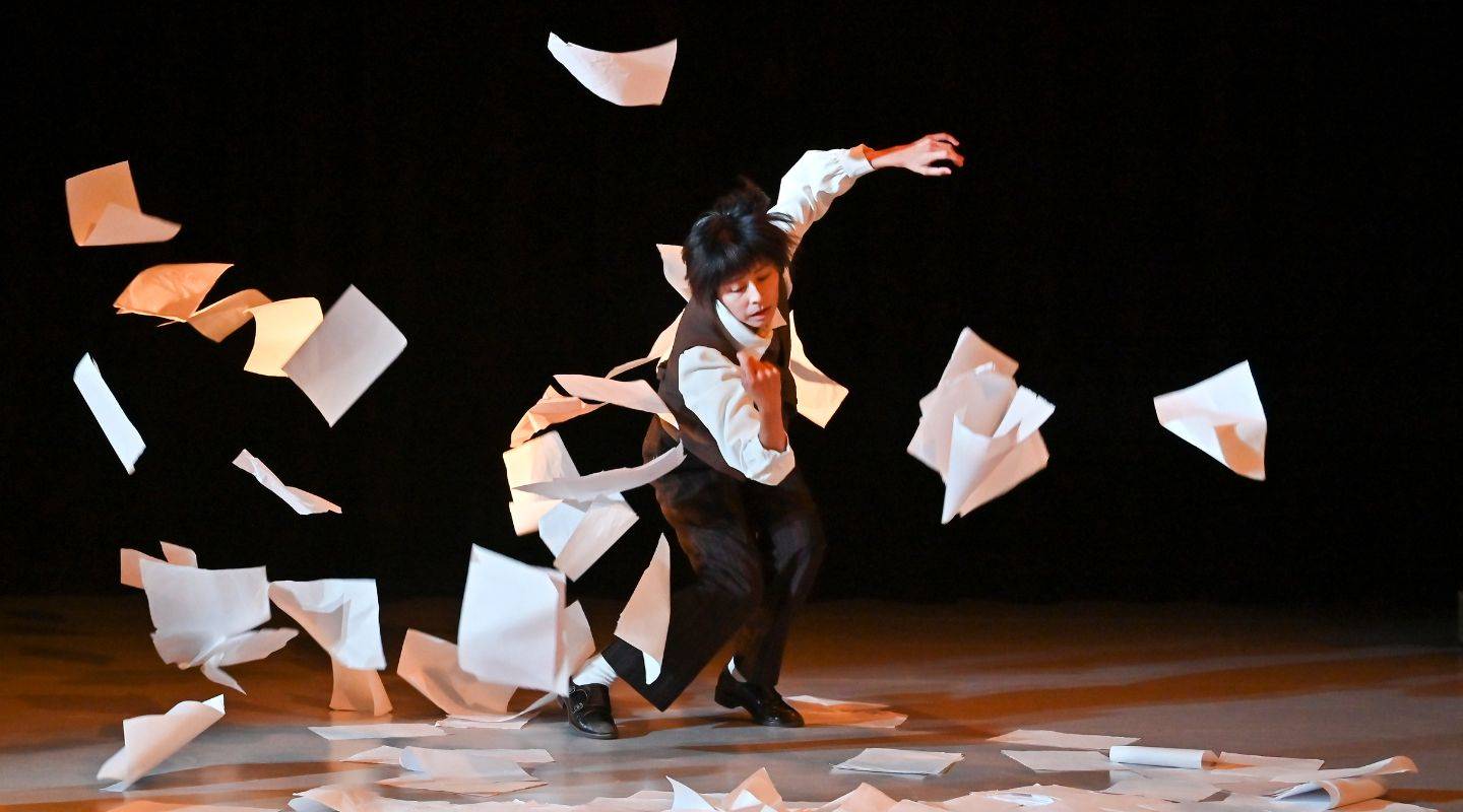 《有可能,但現在不行》的名稱擷取自卡夫卡1914年的短篇《在律法門前》裡的一句話。它看似平凡,卻深刻地蘊含了生存希望與絕望之間的張力,並精準地描繪了個體在迷宮般體制下的無助境遇。編舞家羅文瑾與戲劇構作陳虹均攜手合作,運用舞蹈語彙將卡夫卡文學中的荒誕與迷惘實體化,創作出〈診療室前〉、〈在法門前〉、〈鄰居〉三幕,刻劃出台上角色在權威與規範下的掙扎與無力。每個段落都像一面鏡子,映射出人類生存處境的矛盾,讓觀眾在荒謬中瞥見自己的身影,並從超現實的舞蹈語彙中,找到與自身生命經驗緊密連結的深刻感受與共鳴。