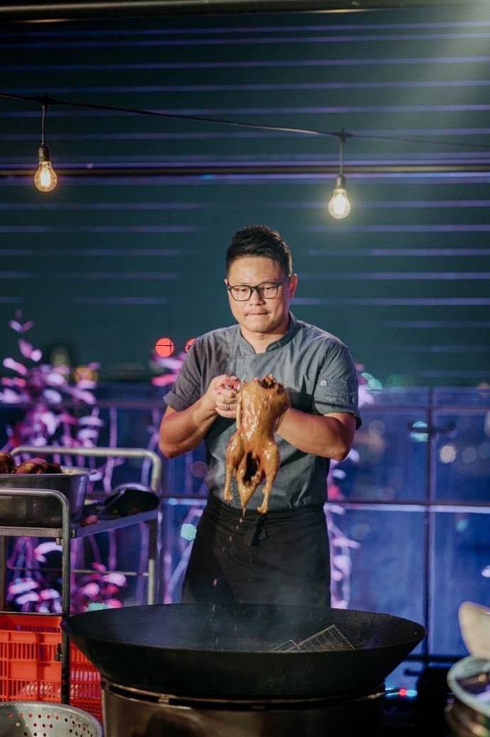 與萬豪酒店集團合作的飯店頂樓辦桌-手路菜現場料理秀。 照片提供:金葉摸油湯辦桌文化工作室