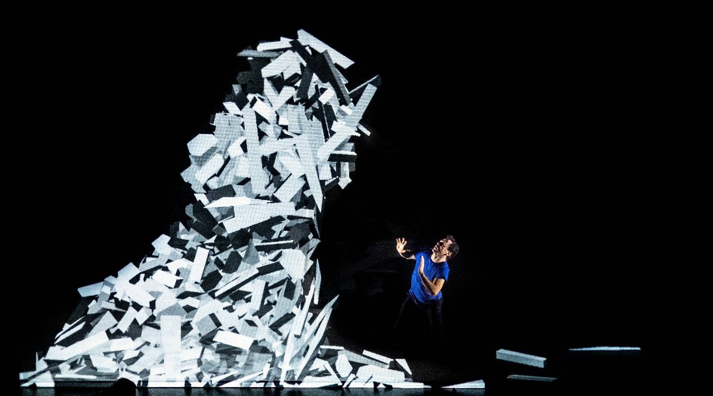 來自法國里昂的科藝創作M&B雙人組,在同一個故事框架下以三種不同演出形式呈現多重視角,包括結合舞蹈與動態數位影像創作〈墨黑〉劇場表演,及運用擴增實境與虛擬實境打造〈鏡面路徑〉AR立體書與〈面對面〉VR沉浸式單人劇場兩種數位裝置展覽,帶領觀眾透過多重科技體驗,探索今日人與科技微妙的共生關係。