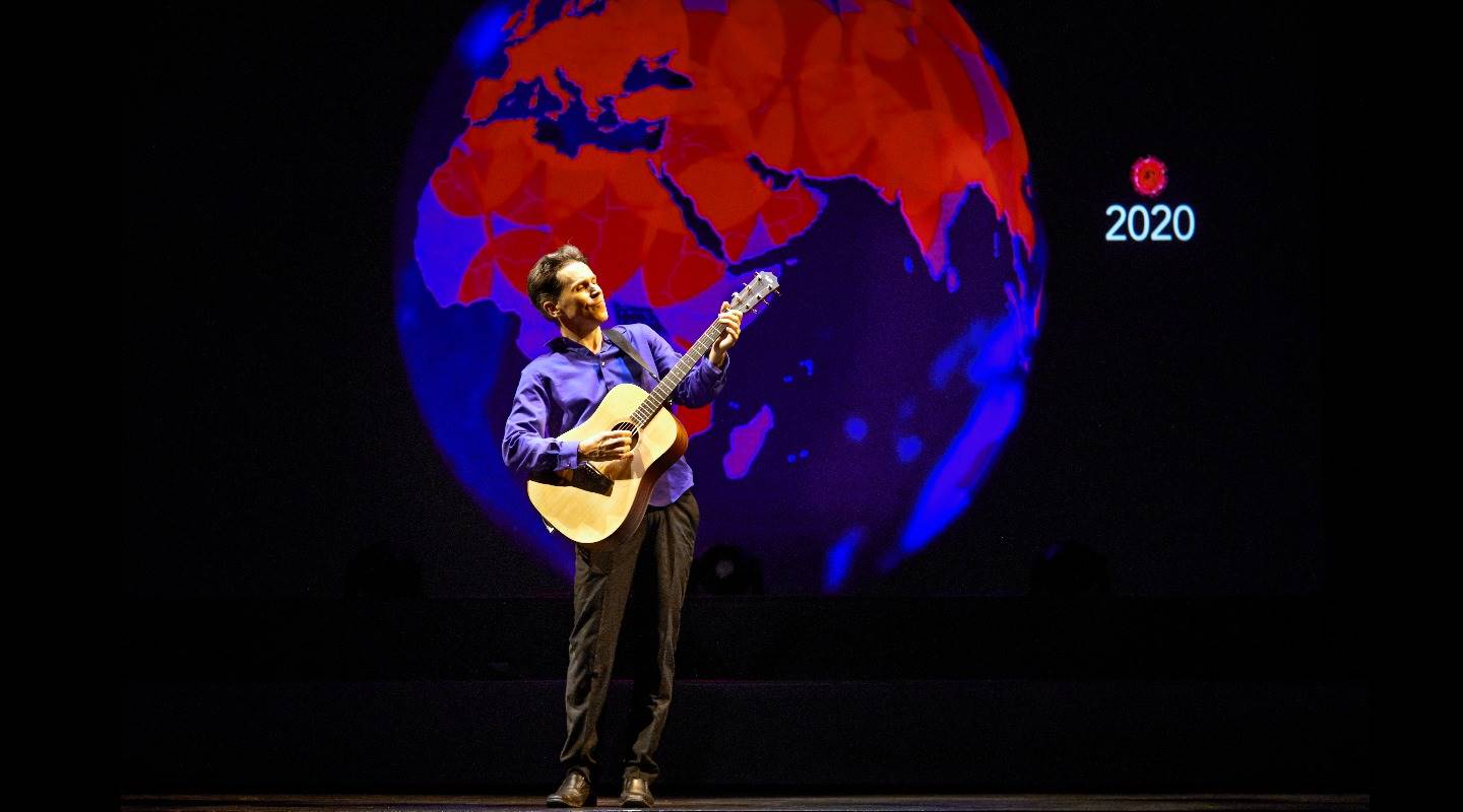 加拿大編導演劇場全才瑞克.米勒(Rick Miller)打造《爆發年代》三部曲,以25年為一個單位,在三部曲300分鐘裡交織出75年的時空。他以獨角戲搭配多元劇場媒體詮釋百餘位知名人物,在一首首經典歌曲中談心、說史,笑鬧中引領我們回望過去、走過現在、想像未來。