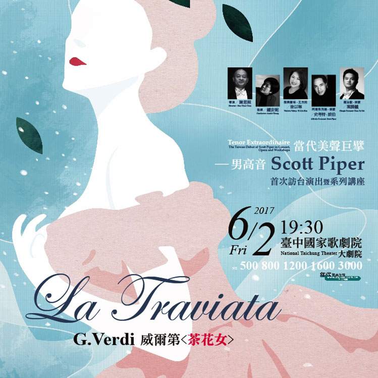 東海大學音樂系將演出威爾第歌劇《茶花女》,特別邀請美國著名抒情男高音史考特 • 派伯來台與本系徐以琳博士、優秀系友葉展毓同台合作演出。年度大製作更集合全系師生共同參與,由本系陳思照教授導演,鍾安妮博士指揮,一同為大家呈現歌劇《茶花女》音樂之美,誠摯邀請各界人士參與。