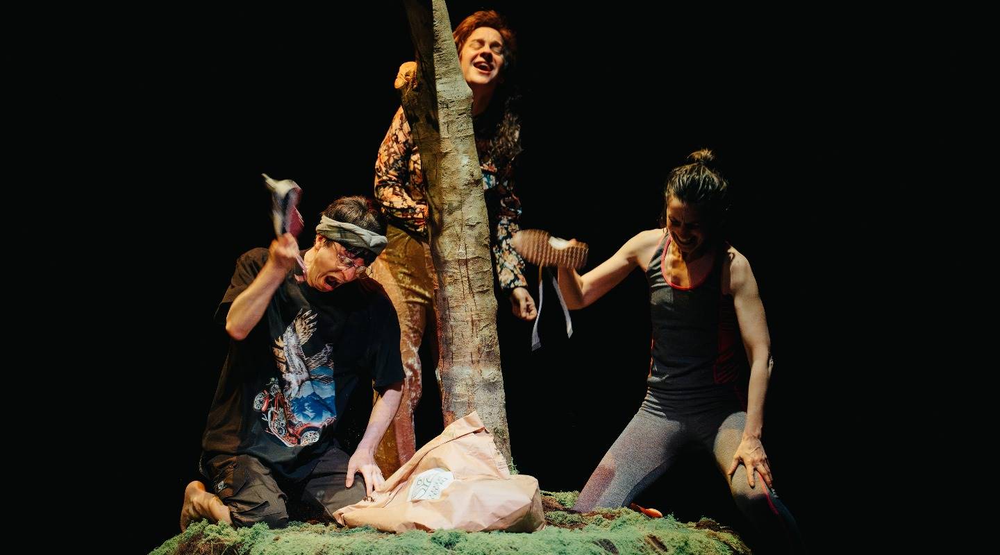 比利時靜物劇團新作《這就是人「森」啊!》,英文劇名Timber以伐木工在樹木轟然倒下前的示警聲為名,帶領觀眾進入一座充滿隱喻的森林。在這自然環境岌岌可危、未來壟罩在恐懼陰影的當下,劇團以荒誕直面現實,揭示一則警世的當代寓言,描繪萬物皆崩壞的末日景象,試圖喚醒人類重新思索與自然的連結,以及對共同存在的根本渴望。