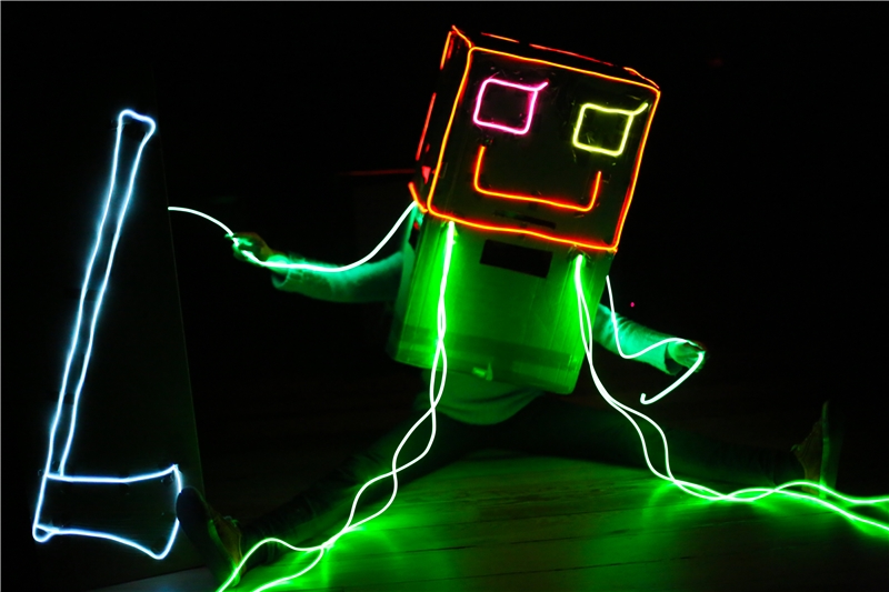 跨界劇場藝術家芭芭拉‧馬蒂耶維奇(Barbara Matijević)和朱塞佩‧奇科(Giuseppe Chico),從網路平台的業餘者自製影片中草擬一份看似任意妄為的清單,在舞台上以遙控器械、電子感應器、LED燈、接滿電線的頭盔、以及各種眼花撩亂的物品,以DIY風格如實複製一個個看似荒謬、獵奇又諷刺的實驗現場:戴上安裝各種視角攝影機的面罩,經歷一場錯置狂亂的感知旅程;一張由聲控感應的摺紙大口喋喋不休,彷彿接上了全世界的擴音器……