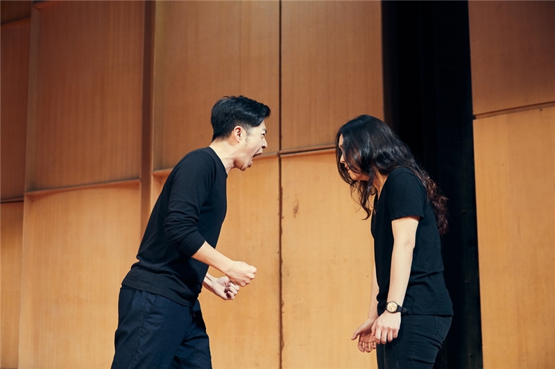 角色隨著情緒高低起伏而區分出數落、嗔睨、叱責、咆哮……等不同層次的怨懟;即使背對觀眾仍負載滿溢情感的肢體語言──因抽噎而抖動的肩膀,因無法反駁一句句如重拳般的指控而頹然跪倒,因惱怒而蓄勢待發、卻在威嚇聲中咬牙放下的巴掌……,藉由這許多細膩的演繹與身心的全然投入,讓一個文學性濃厚的閱讀型文本,在眼前的劇場空間中有了生命。