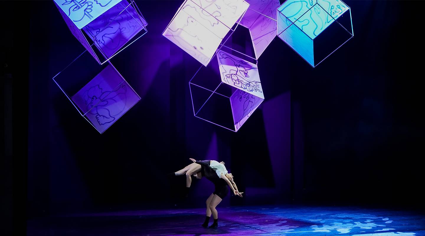 編舞者將挑戰聽著音樂,在動態的立方體畫布上「舞繪同步」,