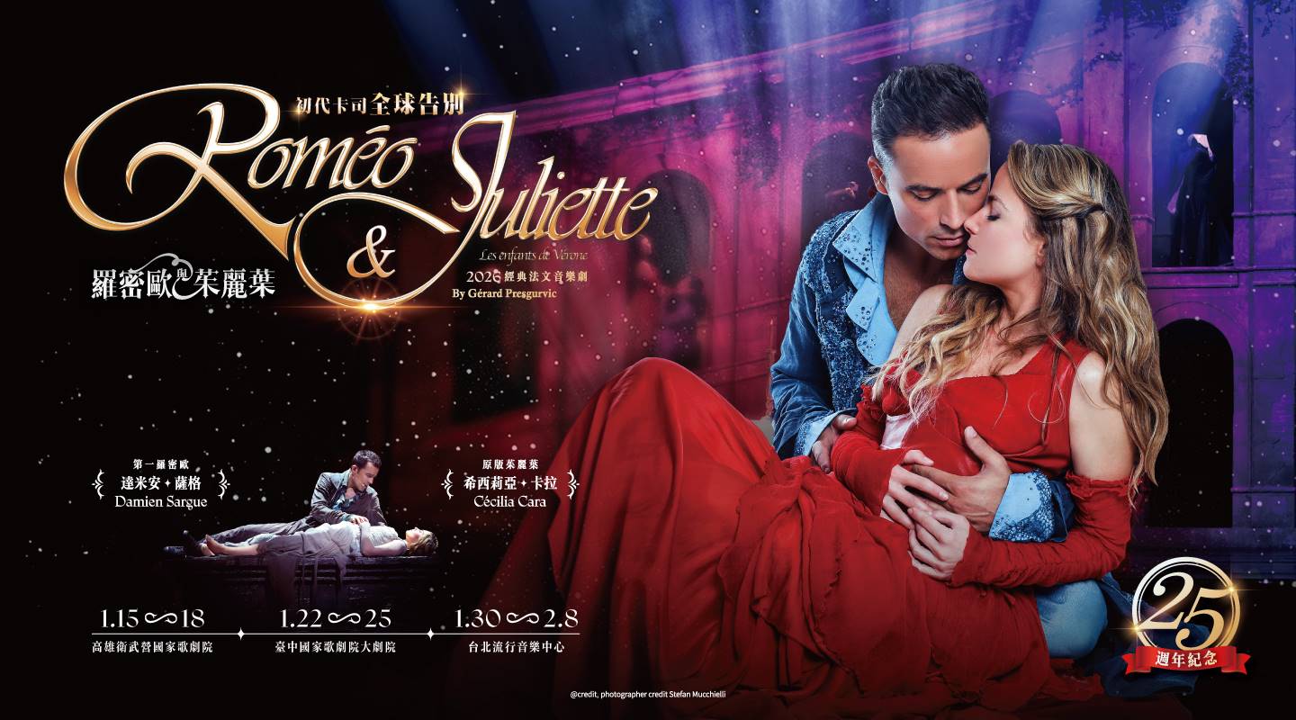 當今唯一用「音樂劇」及「法文」形式來呈現這不朽愛情故事的創作。經典故事、融合流行及古典風格的動人歌曲,再加上高達2.5億製作費的華麗精緻服裝場景,於2001年巴黎首演後深獲各界好評,爾後,陸續在比利時、瑞士、奧地利、英國、中國、臺灣等全球18個國家巡演, 吸引超過650萬戲迷觀賞。本次演出將由新舊卡司聯手演出,睽違五年後,初代羅密歐達米安.薩格(Damien Sargue)將再次回到台灣,詮釋經典羅密歐魅力。