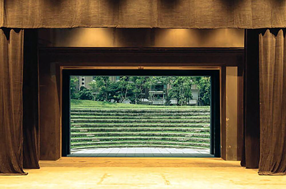 舞台後方的對開門打開後,表演區可與戶外劇場相連。