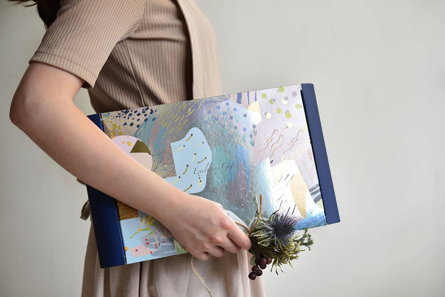 療癒人心的花瓣造型設計,質感插畫燙金點綴,結合形象插畫獨一無二的緹花布,優雅的模樣意喻深遠。丹紅晴雪最適用親情、友情、愛情的饋贈,婉轉表達心中思念之情,讓收禮物的人享受完美食後,還能當成隨心所欲百變萬用袋。