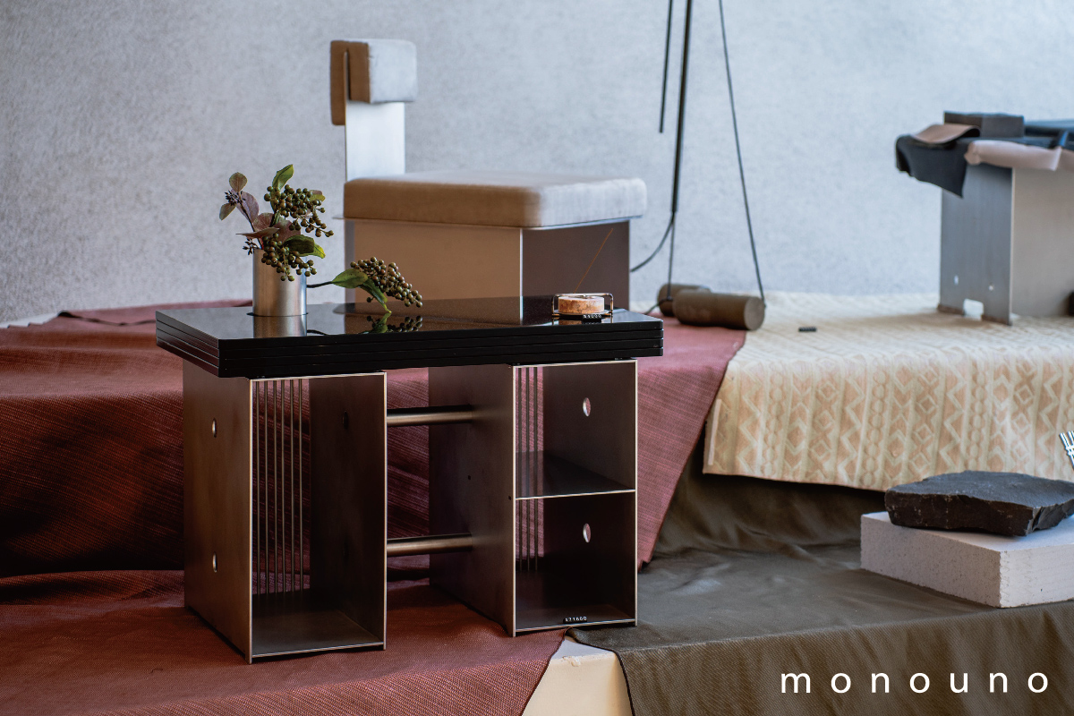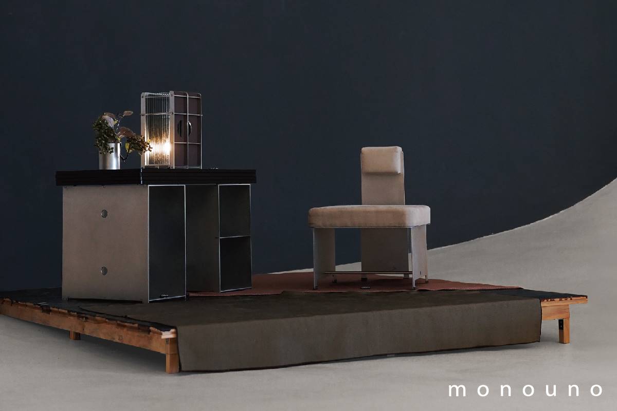 monouno對「space/art/design/object」之間的對話充滿興趣,作品中保留了材料本身的質感,並探討了空間與人之間的比例關係。